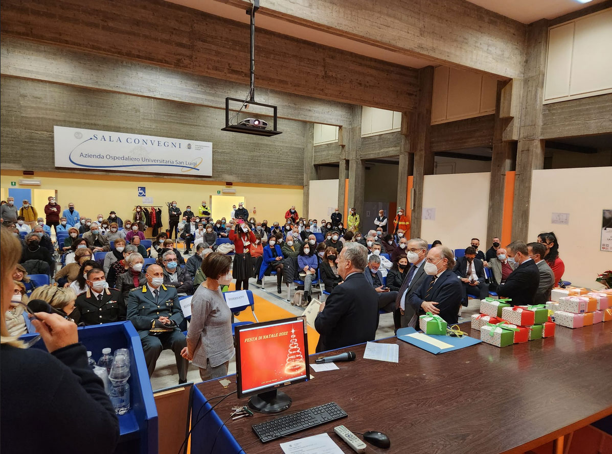 L’evento, molto partecipato dal personale ospedaliero, universitario e dalle autorità del territorio circostante, è stato organizzato in collaborazione con l’Associazione San Luigi Gonzaga Onlus che da vent’anni sostiene le attività volte a rafforzare le finalità istituzionali proprie della struttura Ospedaliera del San Luigi volta sempre più a fornire servizi e prestazioni a misura della persona favorendo sviluppi culturali e socio-assistenziali a favore dei pazienti, in un momento di difficoltà, quale quello delle cure ospedaliere. Nell’ambito di queste attività rientra a pieno titolo ricordare e ringraziare i dipendenti che si sono prodigati per il buon funzionamento dell’organizzazione ed hanno offerto un sorriso a chi versava in difficoltà.