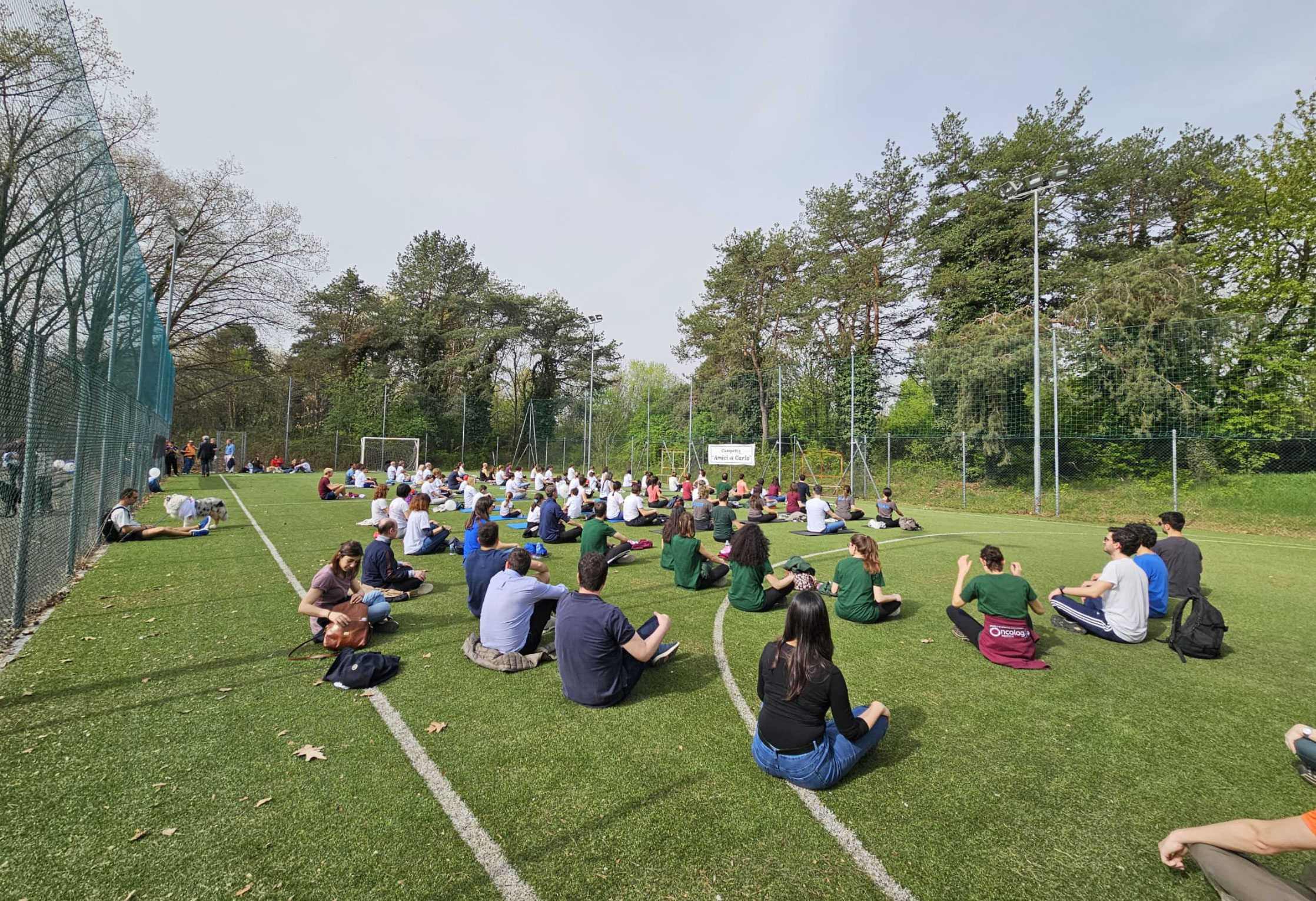 Sotto la guida degli allenatori del CUS l’attività è iniziata con un riscaldamento muscolare, per poi proseguire con una passeggiata nel parco fino ai campi sportivi. Qui i partecipanti si sono alternati in due gruppi, uno dedicato allo yoga e l’altro all’attività di ginnastica posturale da seduti. Al termine, sempre all’insegna della salute, sono state distribuite mele e banane offerte da produttori locali.
