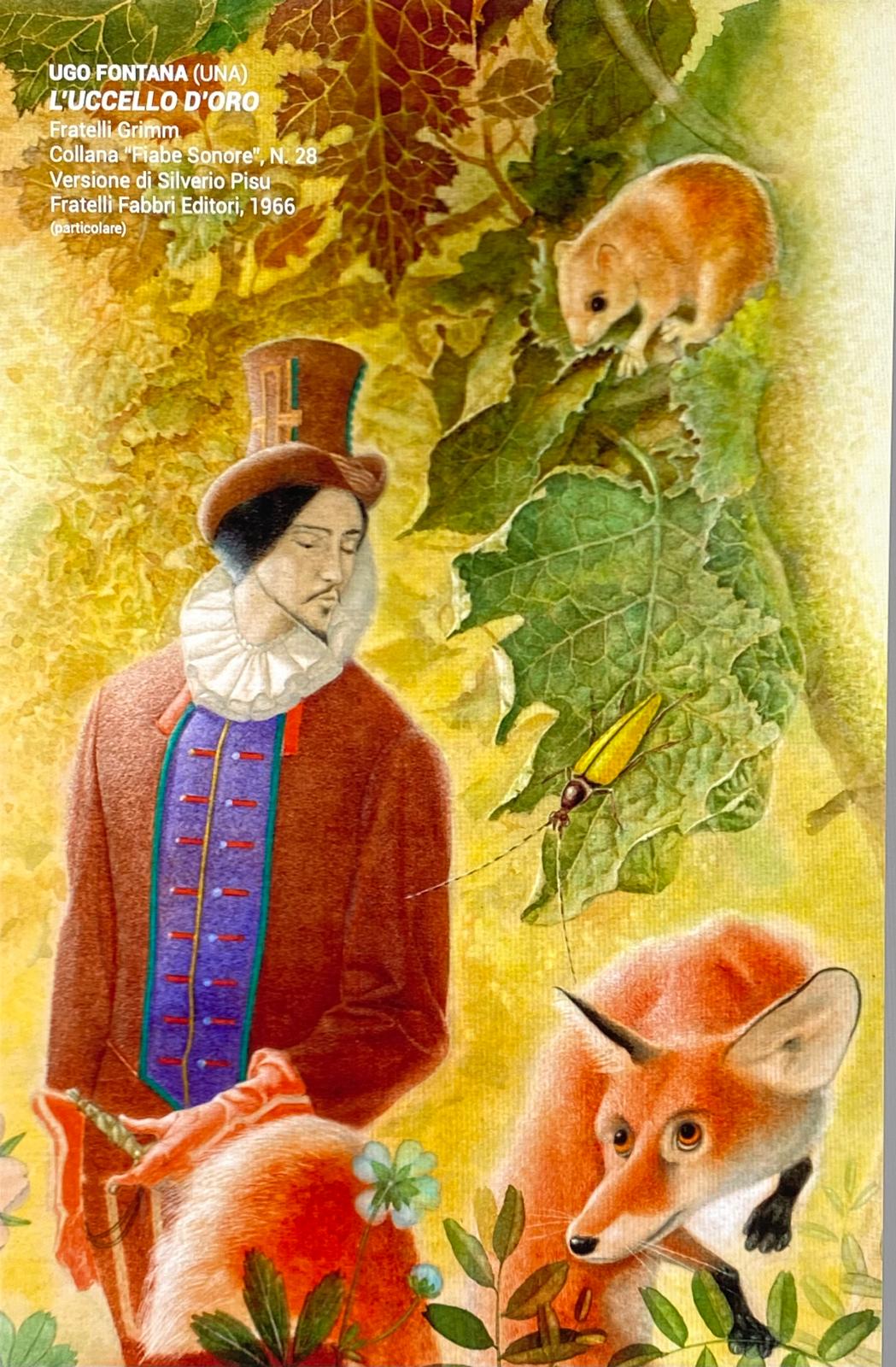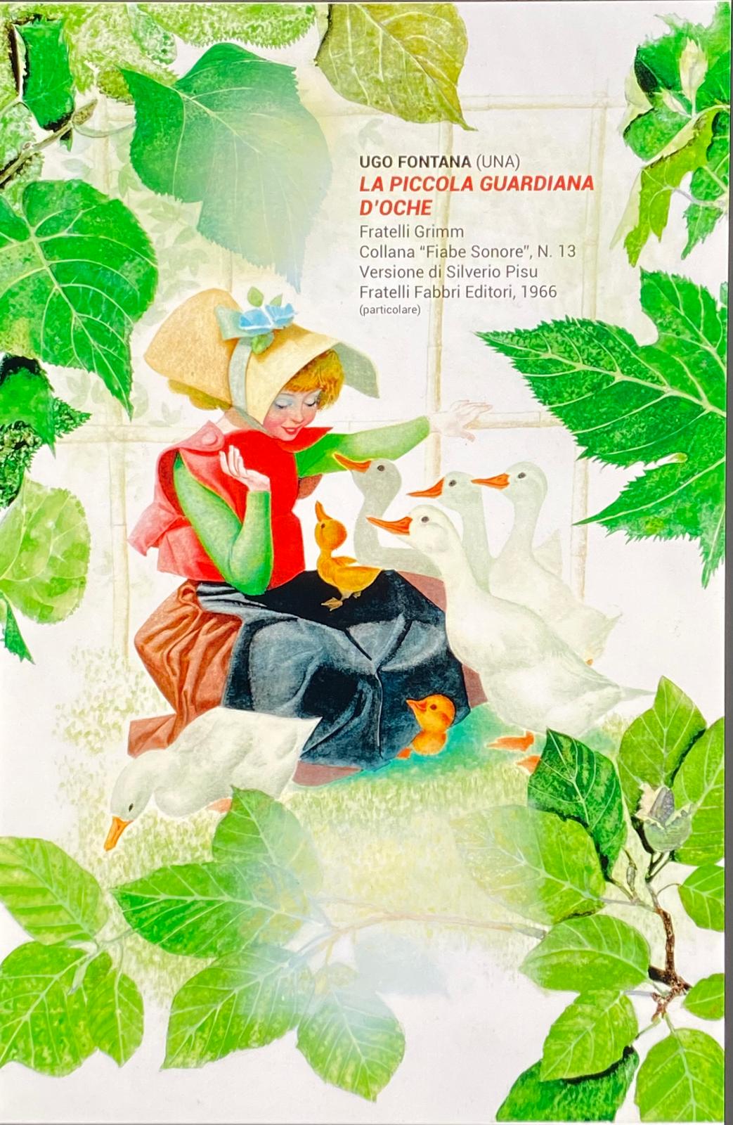 Dall’editore Marzocco a Malipiero, da La Scuola ai Fratelli Fabbri, in oltre duecentotrenta volumi Fontana ha riversato tutta la sua maestria e il suo profondo senso etico ed estetico. Grande notorietà gli ha dato la collaborazione con Fabbri, soprattutto per la pubblicazione a fascicoli delle “Fiabe Sonore”, firmate con lo pseudonimo di Una, e per la collana “Fiabe delle Buonanotte”. Questi sono gli anni (1963-1984) della piena maturità artistica; da La piccola guardiana d’oche fino a L’uccello di fuoco, passando per il capolavoro de Il principe rospo, Fontana tocca tutti i registri espressivi maturati dal suo spirito di osservazione, dalla ricerca di linguaggi inusitati. Tempera e acquerello trovano sotto il suo pennello straordinari risultati pittorici: si guardino ad esempio le tavole di Artù e i cavalieri della tavola rotonda del 1972, nelle quali il dripping dell’acquerello rimanda alle venature di preziose pietre; o alla Bella Addormentata del 1982, nel quale la rarefazione del tessuto pittorico sembra astrarre le figure dando al contempo una forte iconicità. Così i volti delle soavi fanciulle, piene di grazia e lontane da carinerie e leziosità molto in voga in ogni tempo. Una delle caratteristiche non secondarie dell’opera di Fontana è la ricercatezza degli indumenti dei personaggi, mai così ricchi e preziosi. Per concludere ricordo uno dei suoi capolavori: il ritratto di Caterina di Russia, pubblicato da Mondadori in Grandi Regine, libro che gli valse il Premio Bratislava, uno dei massimi riconoscimenti internazionali. Fontana non era solo un grande artista; di lui ha scritto Emanuele Pellucci: «Fontana era intelligente, colto, piacevole conversatore, vivace e puntiglioso nel contraddittorio, dotato di grande umanità, sempre pronto al servizio degli altri». (Dall’introduzione alla mostra di Santo Alligo).