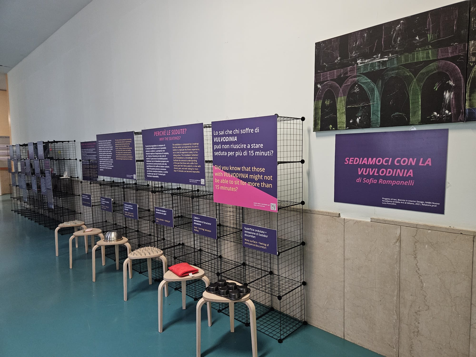 La mostra "Il dolore vulvare. Arte. Scienza. Resistenza", che si colloca all'interno di un progetto più ampio, Dare voce al dolore vulvare, iniziato nel 2023 e finanziato dalla Fondazione Crt per il 2024-25, dopo la sede di UniTo, il Politecnico di Torino e l’Ospedale di Mondovì, con il supporto del Dipartimento di Scienze Cliniche e Biologiche dell’Università di Torino, fa tappa al San Luigi Gonzaga di Orbassano dal 6 marzo al 15 aprile, nel corridoio verso il Terzo Padiglione. L’esposizione ha l’obiettivo di sensibilizzare il pubblico sui tabù culturali legati a questi temi delicati e mira a esplorare pratiche di cura accessibili e inclusive per le persone che soffrono di dolore pelvico e vulvare. L’iniziativa si propone di esplorare le pratiche mediche, sociali e sanitarie per garantire l’accesso a una cura equa e senza discriminazioni, coinvolgendo medici, infermieri, fisioterapisti e tutte le figure professionali impegnate nella cura di questi pazienti.