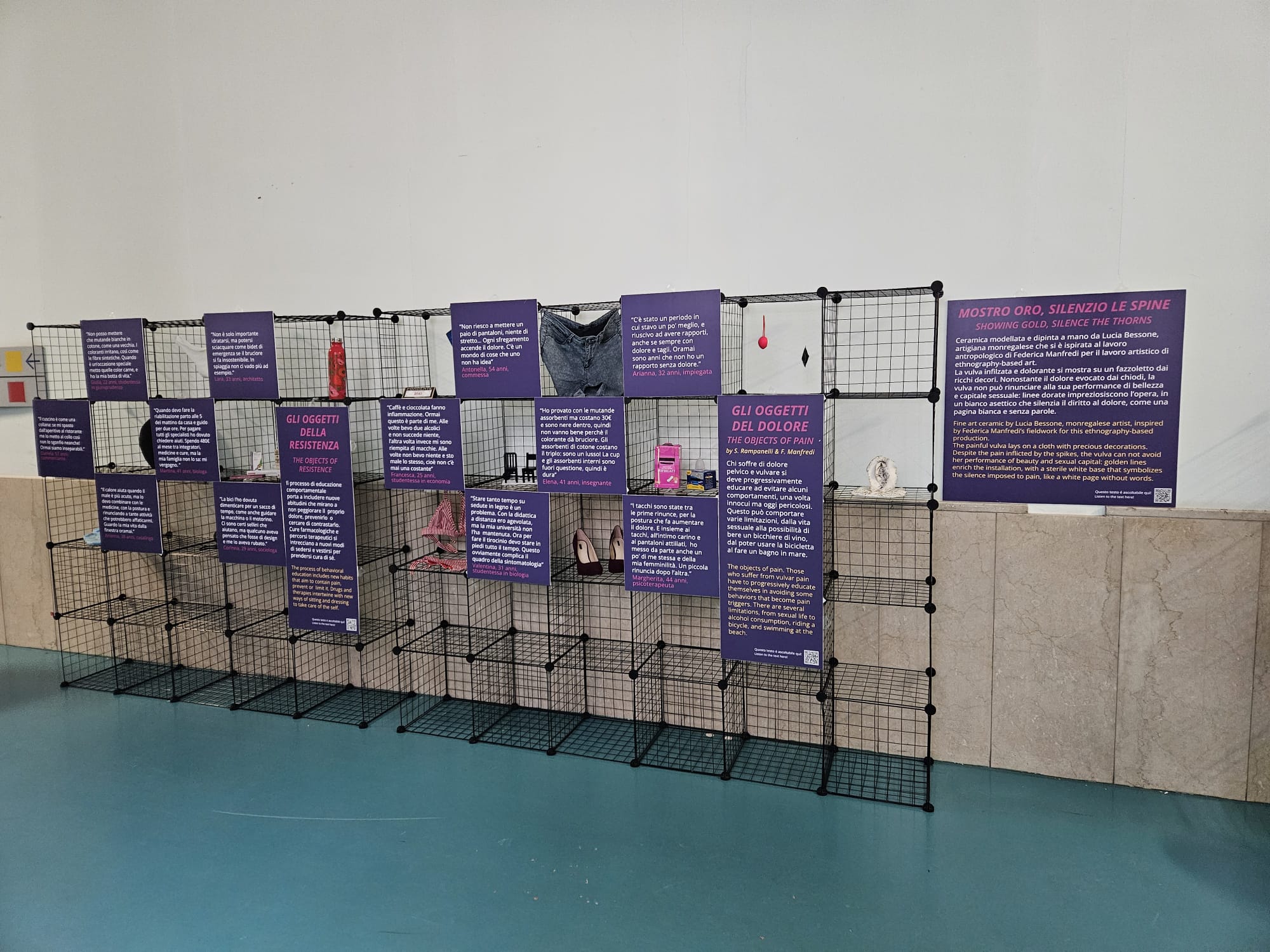 La mostra esplora i risultati della ricerca antropologica La Stoffa del Dolore, condotta da Federica Manfredi antropologa medica dell’Università degli Studi di Torino da Marzo 2023 a Febbraio 2024 con la supervisione scientifica della professoressa Raffaella Ferrero Camoletto del Dipartimento di Culture Politiche Società dell’Università degli Studi di Torino e coinvolge un team multidisciplinare di esperti in socio-antropologia, medicina e salute pubblica.