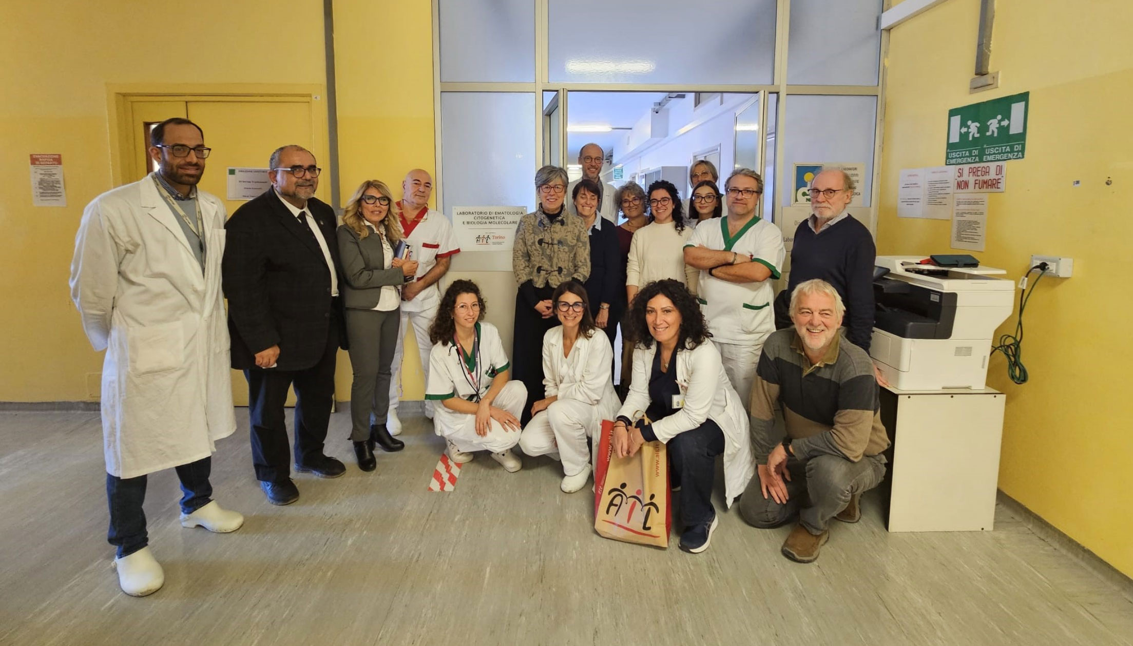 Questa mattina, in occasione del tradizionale banchetto per la manifestazione Stelle di Natale per sostenere la ricerca e la cura dei tumori del sangue organizzato dalla Struttura Medicina interna ad indirizzo ematologico, si è svolta la cerimonia di consegna e posa della targa donata da parte di AIL presso i locali del Laboratorio Analisi di diagnostica molecolare ematologica.